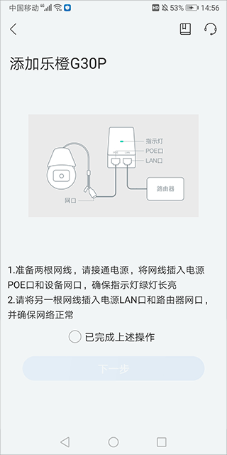 6、万一无线连接不成功,可以试试有线的方式。先把摄像头用网线插到路由器上,确保它联上网了,然后再回到应用里完成绑定操作。