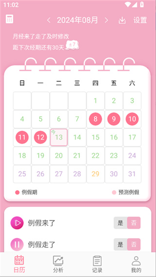 1、经期记录,将每月经期、安全期和排卵期时间都提前排列出来,让其能够提前查看以及做准备;