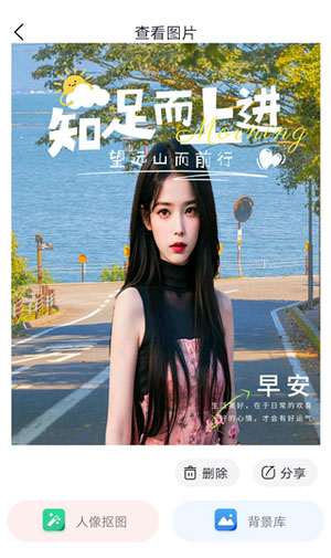 1、它自带的那个背景库,良心讲,素材质量都挺高的,不是那种劣质风景图。抠完图直接点一下就能换背景,想搞点有创意的图方便多了。