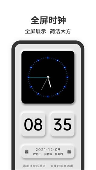 2、点击全屏时钟,多种锁屏时钟主题任由用户选择,可以显示位置,天气状况;