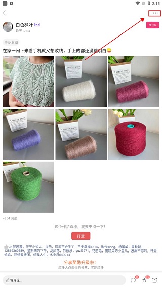 大家看这张图,在作品页面的右上角有个“…”的符号,点开之后,你可以选择收藏这个帖子,或者单独把里面的图片保存下来,复制链接分享给朋友也行。