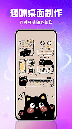 4、主题个性装扮:除了壁纸,还有主题和小组件,能一键换全套。讲真,UI稍微有点复古,但功能确实没毛病,连微信QQ的背景图都能给你安排上。