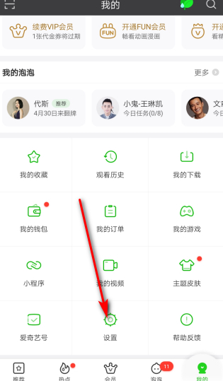 1、在手机上打开爱奇艺,进入主界面后,留意顶部的导航栏,点击其中的【云影院】(也就是下图中绿色框框标出的区域),就能进入云影院的专属版块。