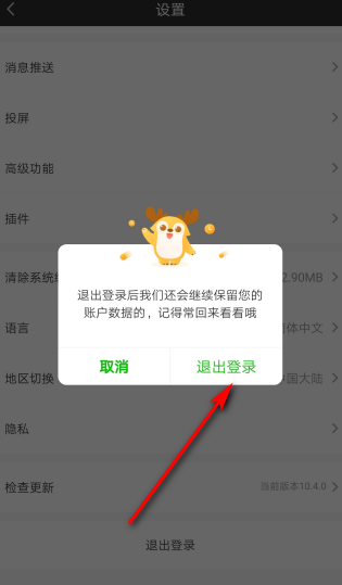 4、点击后会弹出一个确认窗口,再次点击【退出登录】来确认你的操作。