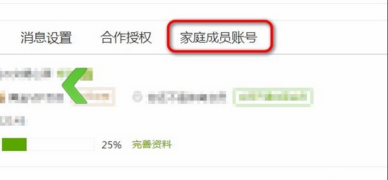 3.在个人设置页面里,找到并点击【家庭成员账号】。