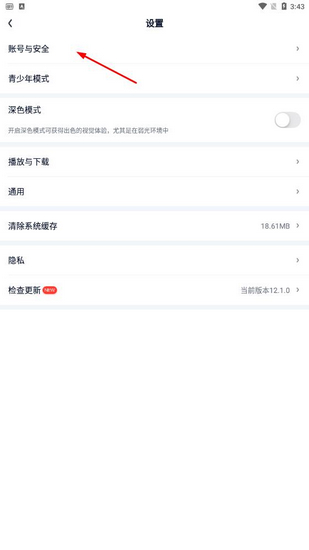 2.在设置菜单里,选择【账号与安全】这一项,进入账号管理的相关界面。