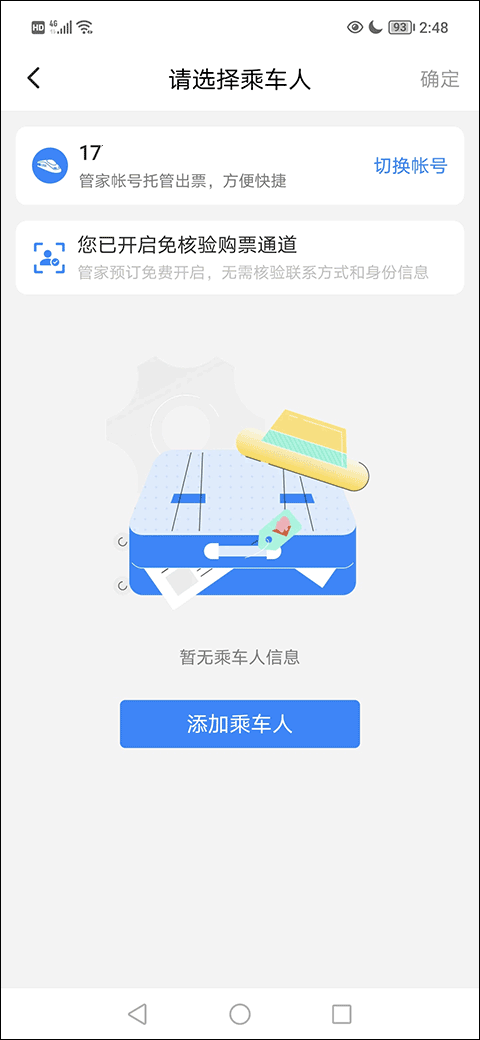 5、选择“添加乘车人”,进入信息填写界面。