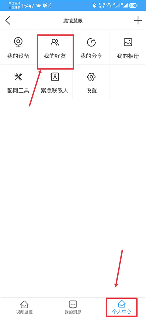 2、接着会跳到魔镜慧眼的个人中心,在这里面找到“我的好友”选项,点进去。