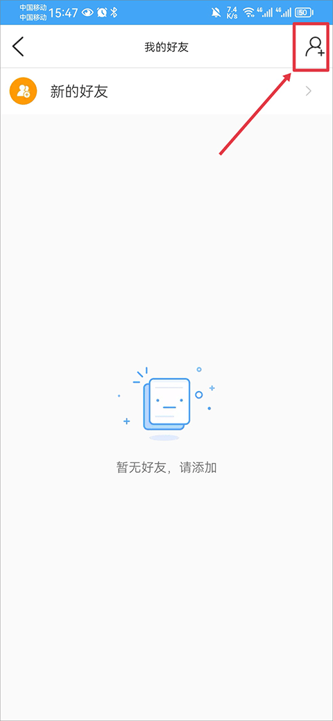 3、看到截图里这个界面没,还是找右上角,那个加好友的小图标,就是它了。