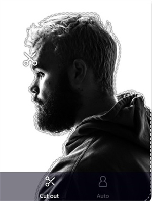 3、用手指大概沿着物体的轮廓画一圈,然后点“>”下一步,再点【智能】并选中【人像】,系统就会帮你把人像精准地抠出来了。