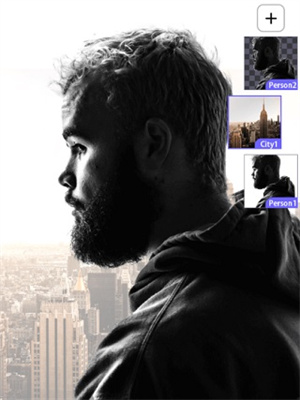 2、先把两张照片都加进来,一张有人物的当底图,另一张城市夜景的图就用来做叠层素材。