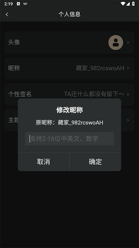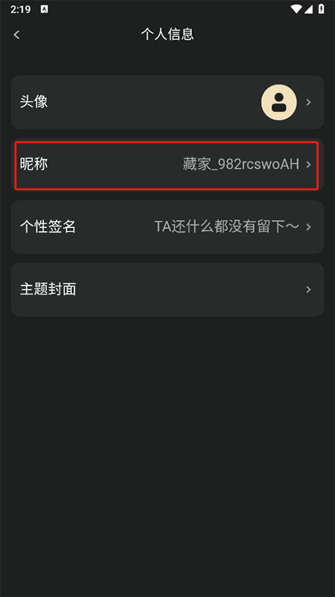 3、资料页里头,找到“昵称”那一栏点一下。