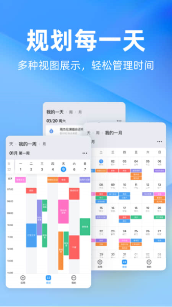 2、出色的时间管理能力,通过日、周、月等多种视图的展示,帮助用户清晰地规划日程,从而更有效地利用每一分钟。