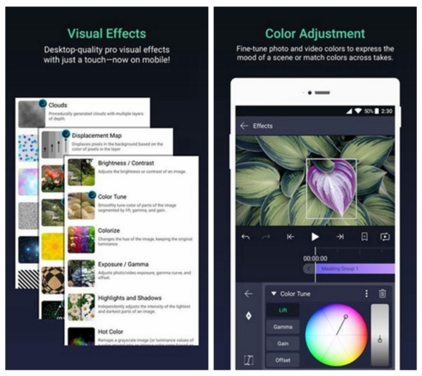 • 视觉效果和色彩校正功能很强大,调色什么的完全不在话下。
