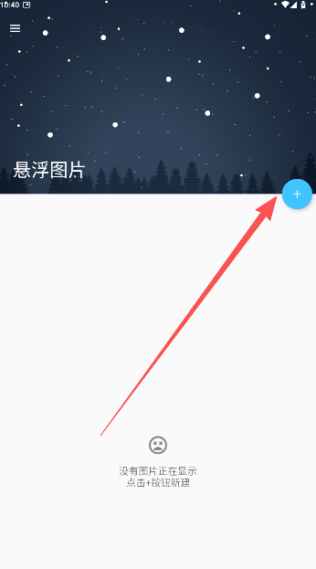 2、授权搞定后,就进到主界面了。看到截图里那个很显眼的蓝色“+”号按钮没?戳它一下,你就可以从手机相册里选你想悬浮的图片或者GIF动图了。