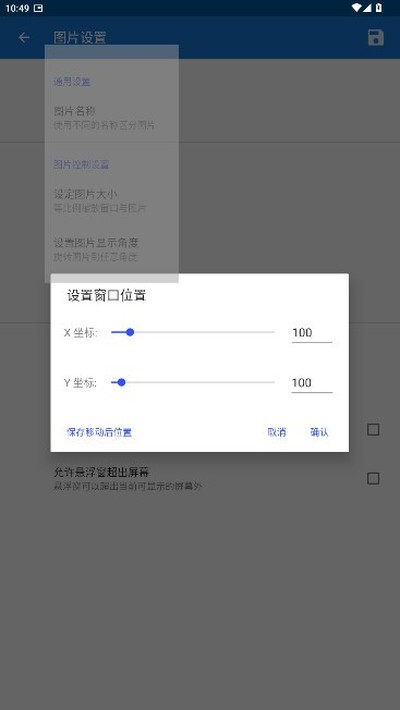 1、核心功能就是悬浮窗口设置。任何图片或者GIF都能被你设置成悬浮窗,而且位置、大小、透明度这些参数都能让你随心所欲地调整。