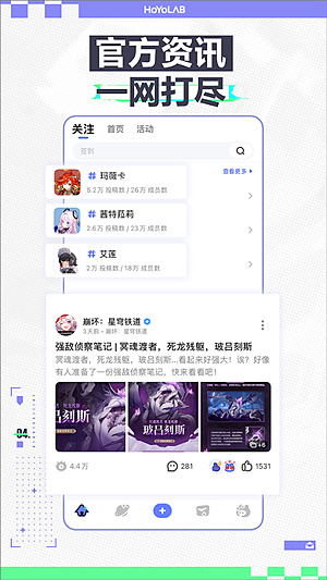 这玩意儿就是米哈游官方的游戏社区,不过是国际版,国内咱们叫米游社。崩坏3、原神、崩坏2、未定、星穹铁道……米家游戏基本都集齐了。你可以在这儿发帖吐槽、找游戏攻略,或者看看大佬们画的同人图,跟同好们唠嗑的地方。