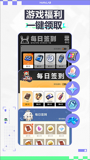 除此之外,用户还可以在HoYoLAB社区中免费获得多种福利。。各种签到活动别忘了点,每天动动手指头,就能攒点原石水晶之类的游戏资源。对零氪和月卡党来说挺香的。有兴趣的自己下来看看吧,反正不要钱。