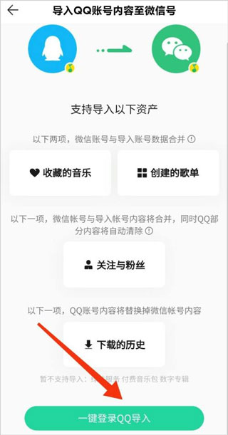 3、最后会跳到下面这个页面,啥也别想,直接点最下面的【一键登录QQ导入】,等着它自己同步完就OK了。