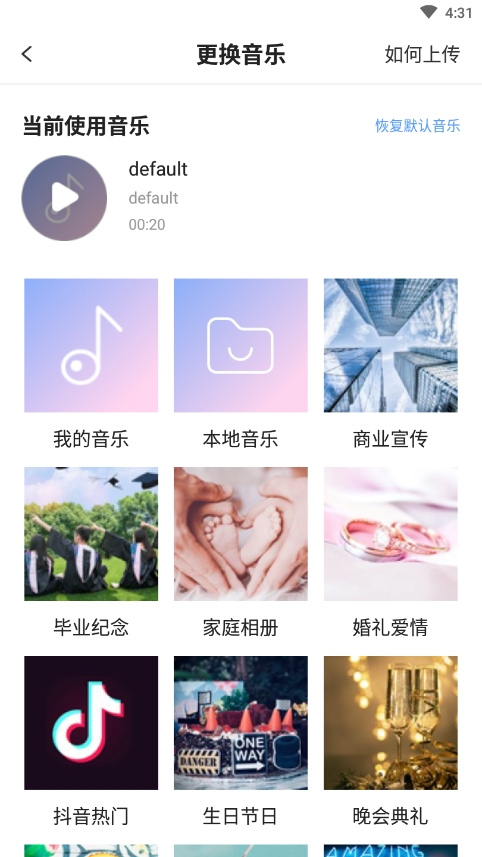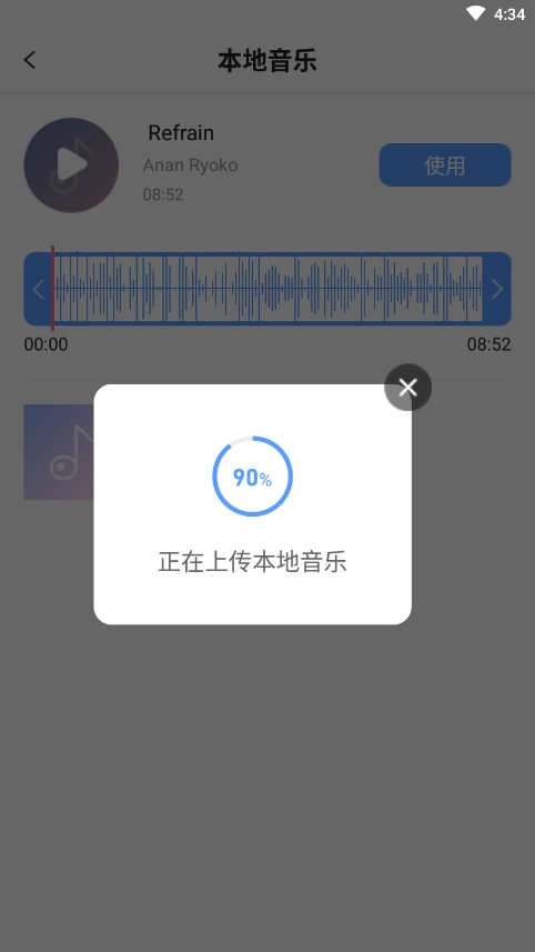 4、音乐需要上传一下,我刚上手实测,网速正常的话也就十几秒的事儿,很快。传完之后,背景音乐就成功换掉了。