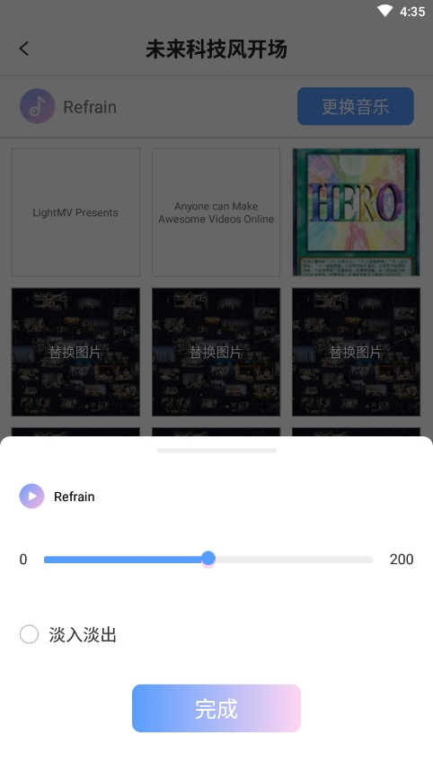 5、划重点,在最底下还能调BGM的音量大小,或者给它加个淡入淡出的效果,让音乐听起来更自然。