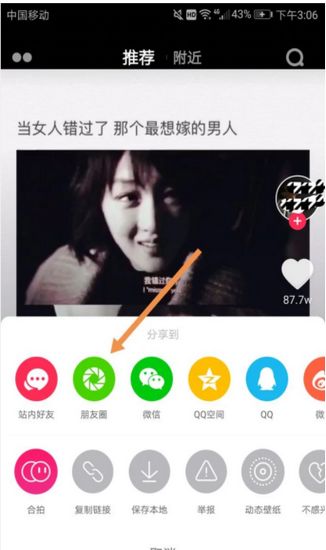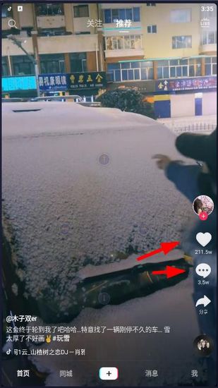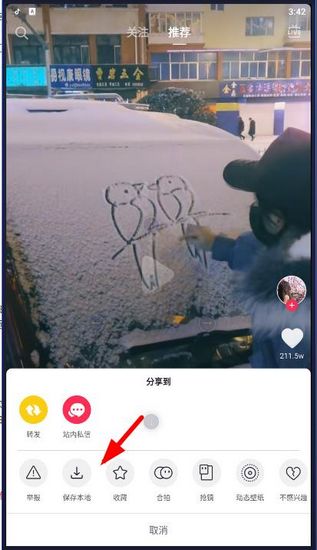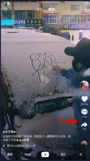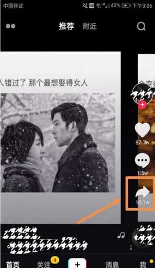 1. 刷到一个你特别喜欢的视频,想存下来自己看,操作很简单。看到视频右边那一排按钮了没?点那个箭头的图标。