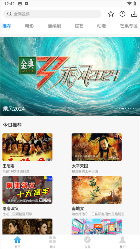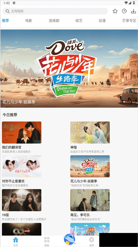2、一进主页,它就会给你推一些现在比较火的电影、电视剧和综艺,帮你快速找到可能喜欢的片子;
