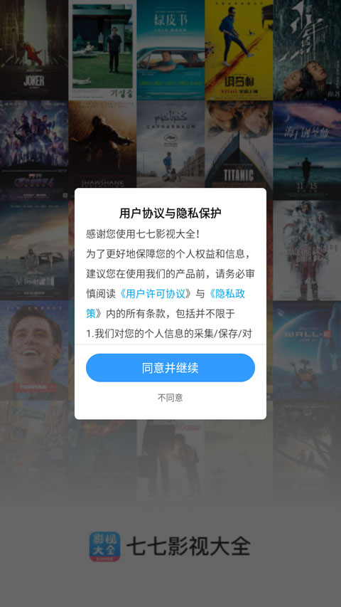1、先下好这个叫七七影视大全的软件,打开后同意协议就能进去了;