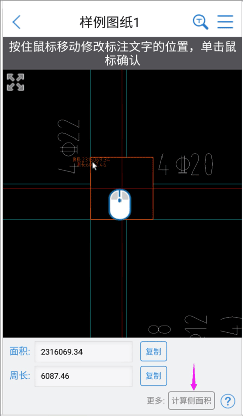 1、所有算出来的结果都能复制,你可以配合文字标注功能,直接把数值贴在图纸上。