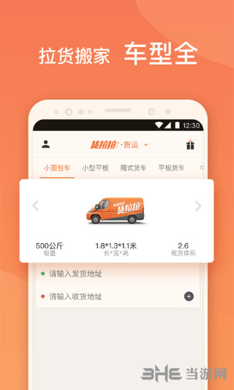 1、先在手机上打开【货拉拉】这个App,进入首页之后,第一步就是选你需要的车型,选好之后再分别填上你的出发地和目的地。你点一下“起点”那个框,它会自动帮你定位当前位置。