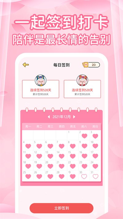 5、只有一方签到的话才只有半颗心哦!要双方都签到才算完整签到哦;