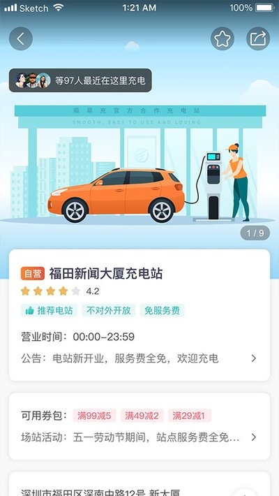 1、它会根据你的实时位置,帮你把附近的充电站都列出来,还会显示哪个桩在用哪个桩空着,方便你规划路线。