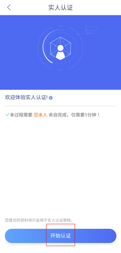 3、然后就到了认证的主界面了,点那个大大的“开始认证”按钮。