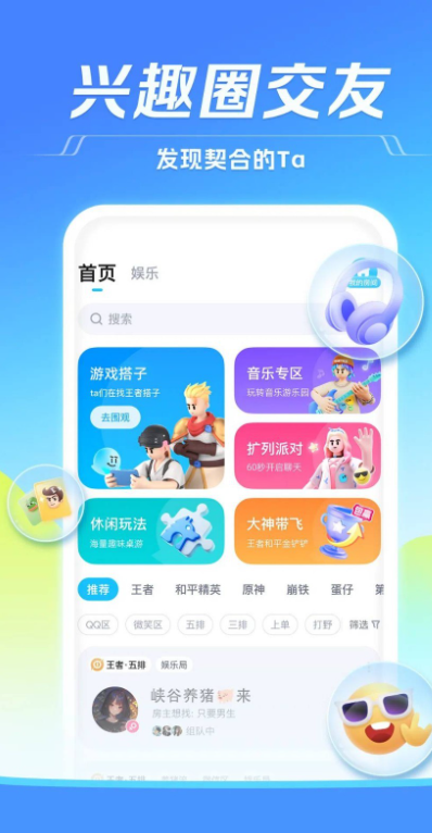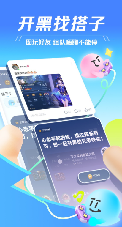 内有超过20万的大神级、声优级、幽默的游戏陪练,语音交友扩大你的交友圈,内含英雄联盟LOL、英雄联盟手游、王者荣耀、DOTA2、绝地求生、和平精英、坦克世界、守望先锋、第五人格、堡垒之夜等各种主流游戏的语音开黑娱乐。内含语音小游戏,可以匹配其他用户边聊天边玩各类休闲游戏,例如斗兽棋、桌游、狼人杀、剧情杀、你画我猜等等
