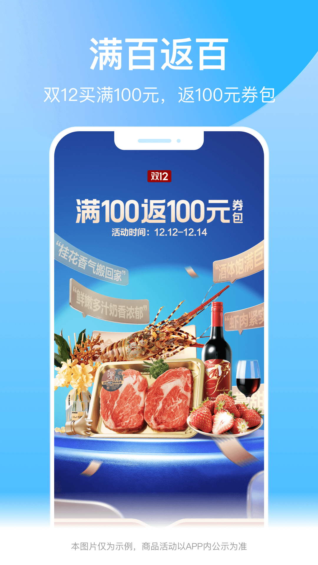 - 双12买满100元,返100元券包