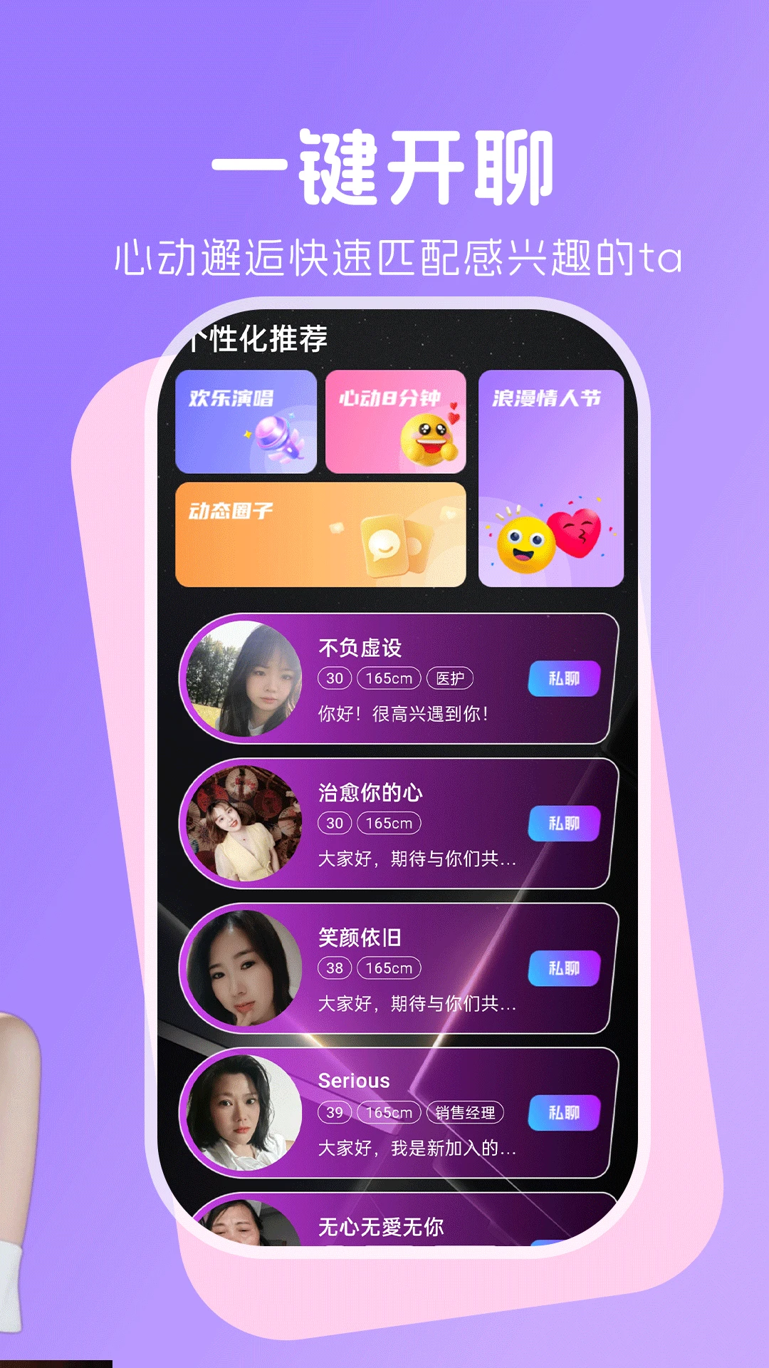 3、一键去搜索和匹配吧,这里互动社交的方式多样,值得信赖的脱单工具。