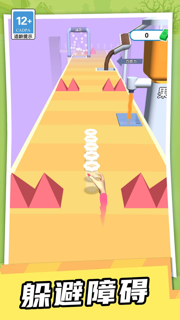 2、玩家操控的冰淇淋杯,去边跑酷边收集新的冰淇淋口味,去尽可能的制作一个超级大雪糕;