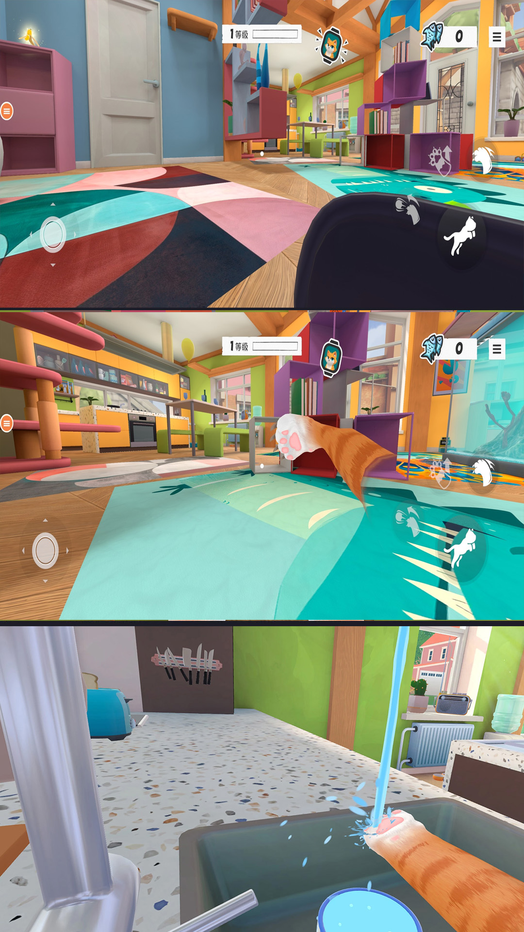 1、游戏画面色彩明亮,猫咪动作流畅自然,细节如尾巴摆动增强了沉浸感。