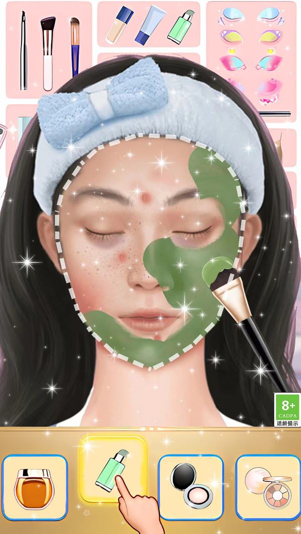 公主美容大变身是一款为美丽的公主进行护肤美妆的模拟游戏,以皮肤修复为核心剧情,玩家需通过专业美容步骤解决公主毛孔粗大、黑头、黑眼圈等问题,护理步骤详细,你可以使用去角质膏清除毛孔污垢,通过放大镜观察皮肤纹理变化,增强操作真实感,通过点击、拖动完成美容步骤,让公主焕然一新,让人惊艳不已。