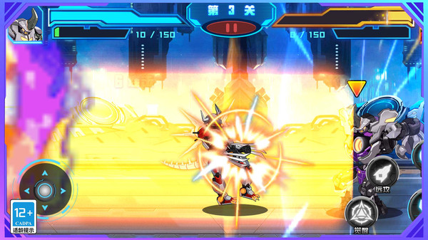 3、涵盖不同关卡挑战,每个关卡的机甲敌人能力都不同,击败他们获得胜利。