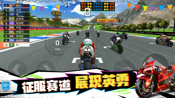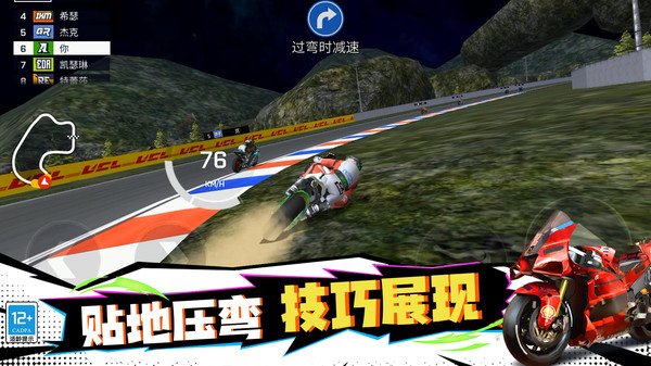 3、左侧控制摩托移动方向,右侧控制油门刹车,在赛道上超越对手争夺排名。