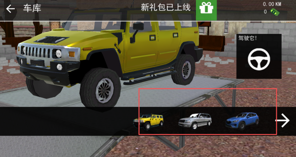 1、进入游戏可以自由选择不同的车辆,展开一场精彩的驾驶大闯关。