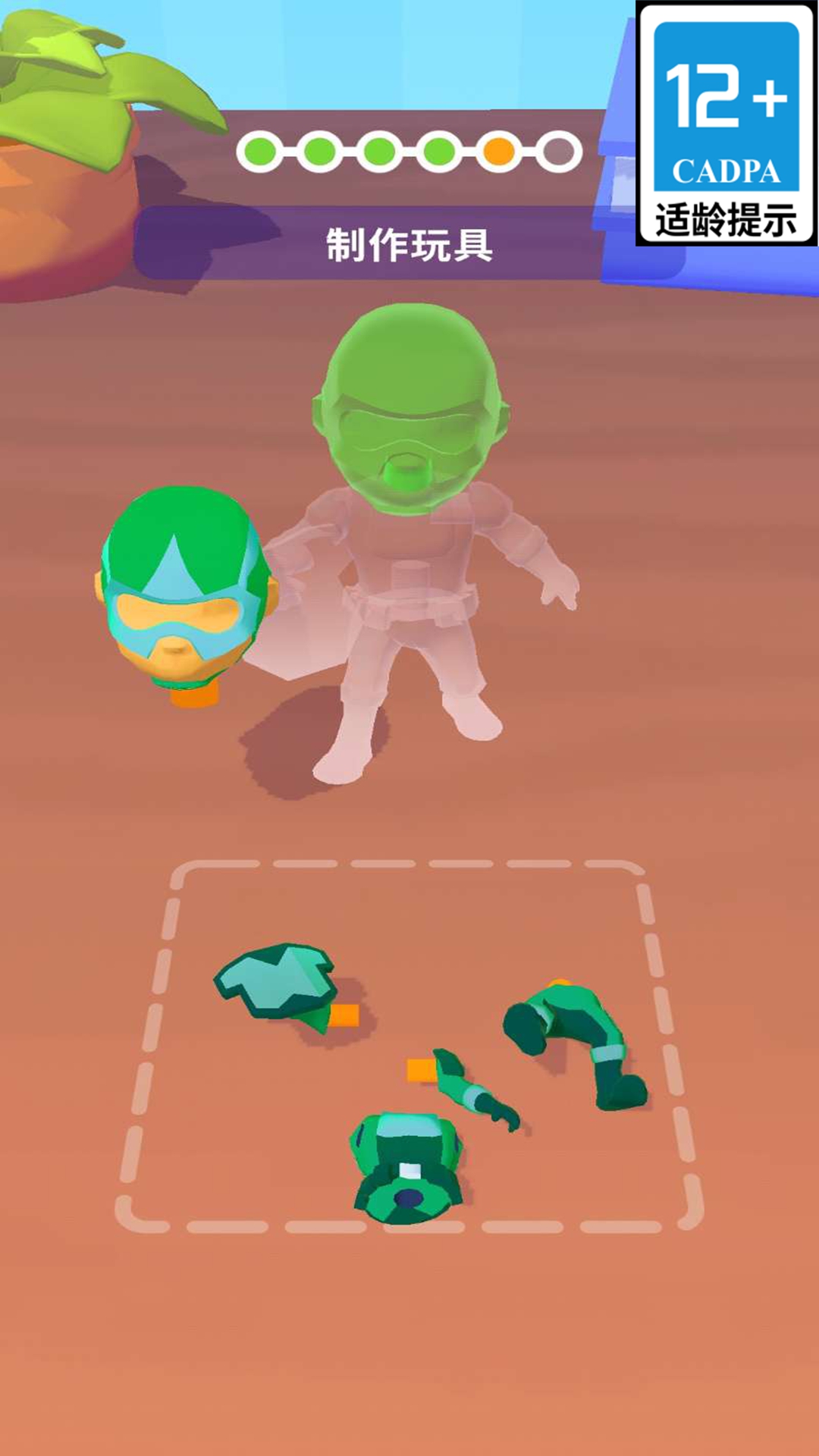 1、点击屏幕开启玩具蛋盲盒,随机获得一组拼装零件,稀有零件需多次抽取或完成任务获取。