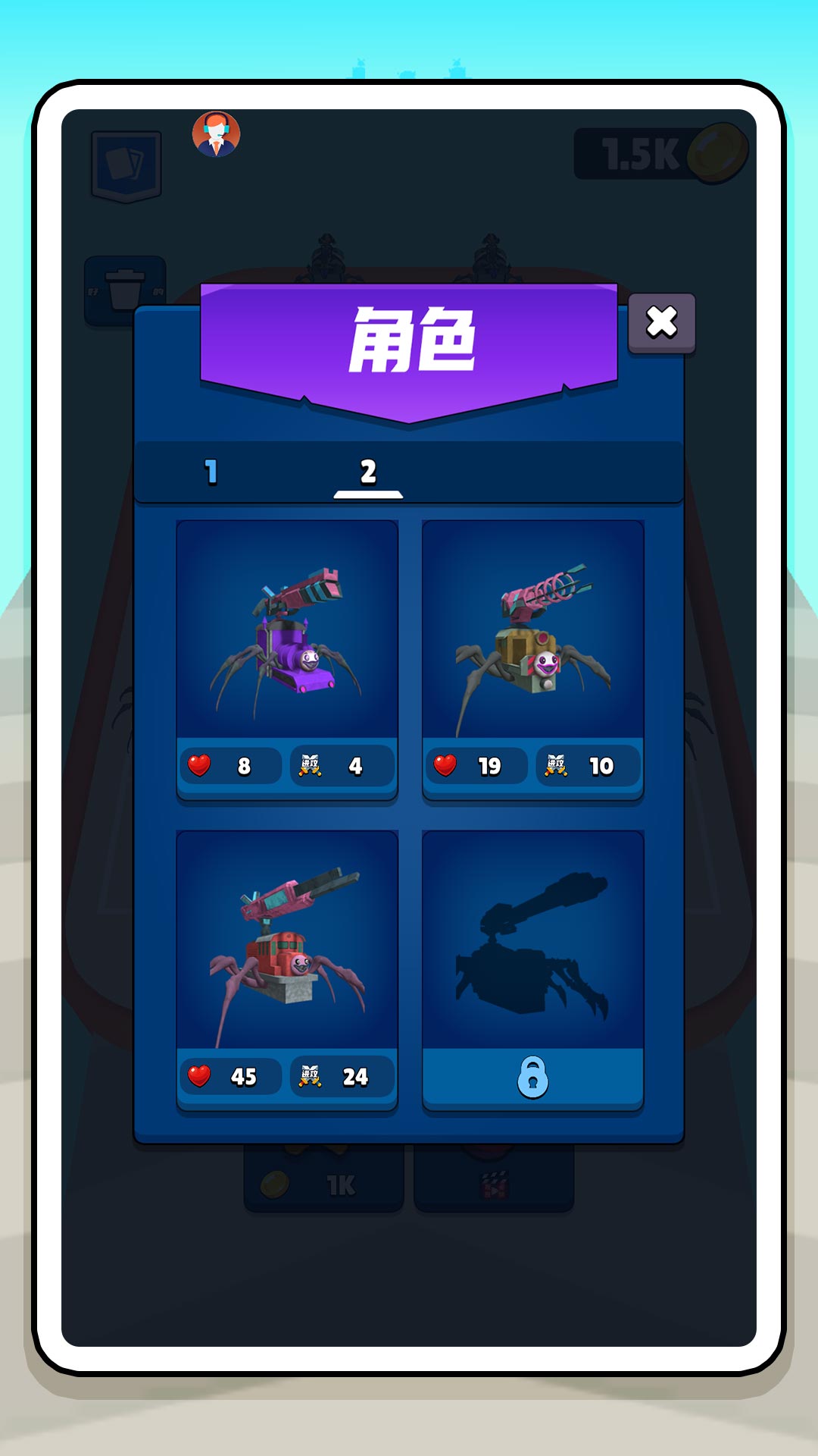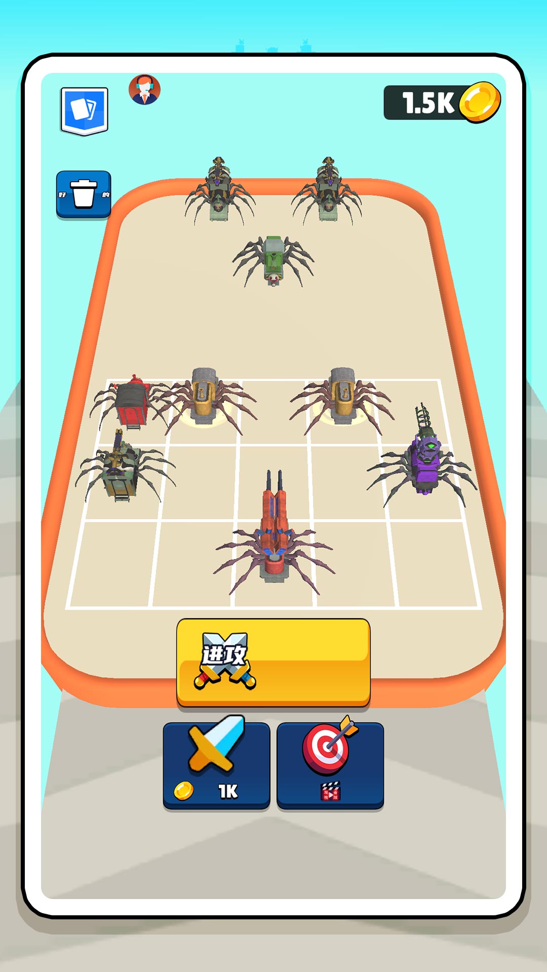 2、点击合成相同的角色,升级角色的攻击力,点击进攻即可开始对战。