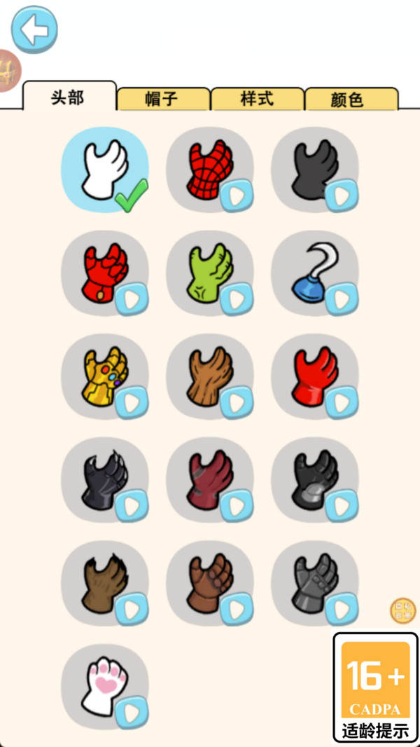 2、火柴人的手套种类颜色比较多,快速去解锁使用。