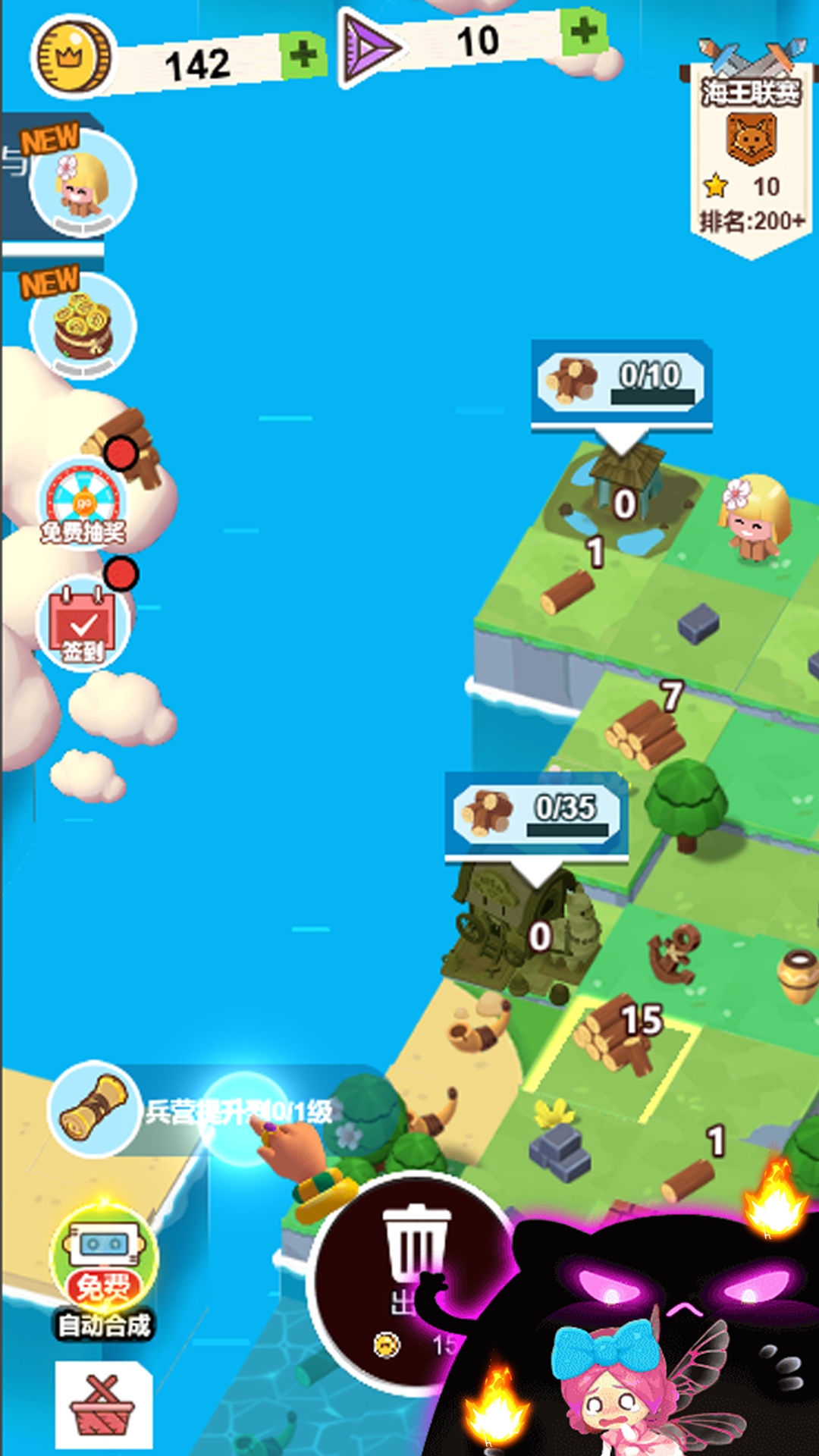 4、拖动鱼叉跟农民,放在一起合成鱼叉兵种。