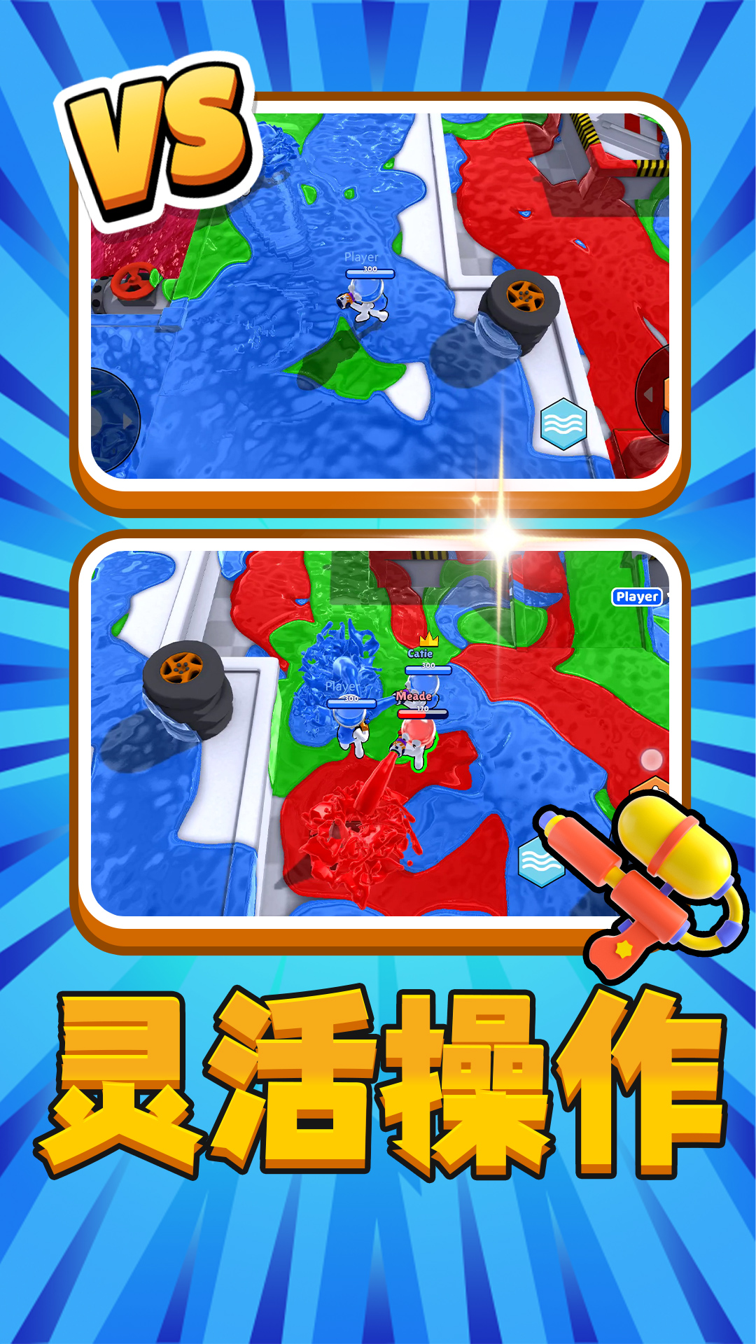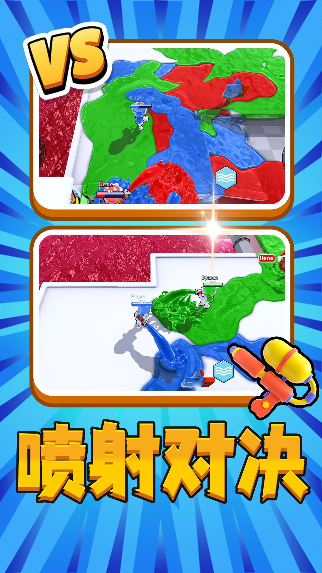 疯狂喷射是一款尽情喷洒油漆,占领地图的闯关游戏,玩家使用喷枪、滚轮等武器喷射颜料覆盖地面,通过占领区域面积决定胜负。颜料覆盖区域不仅标记领地,还提供移动加速和生命恢复效果,而触碰敌方颜料会导致持续掉血,喷漆罐资源有限,需合理分配使用,玩家去积极的喷射,将所有的地盘全部占领,赢得最终胜利。