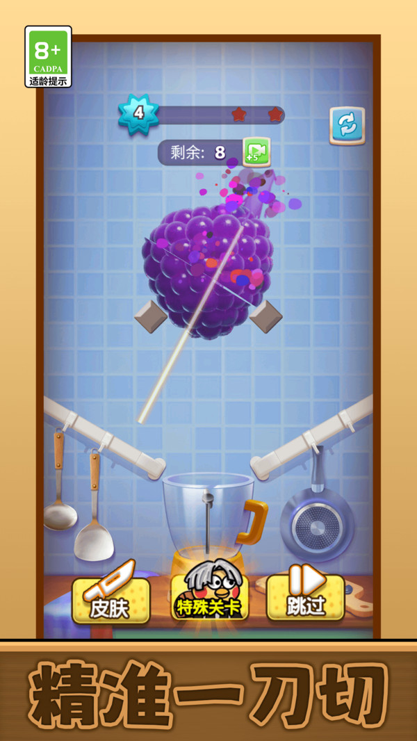 2、连击触发“爆裂连击”时,屏幕震动配合慢动作回放,突出切割轨迹与汁液飞溅的细节;