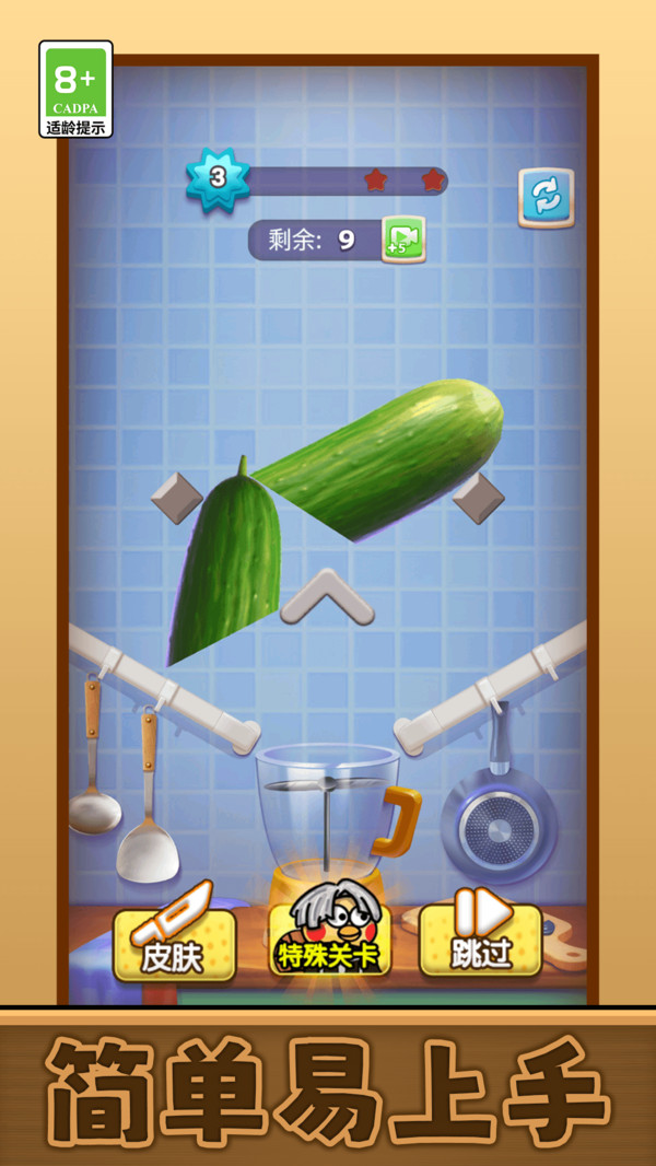 1、游戏支持实时动态光影,水果切割时的反光效果随光源角度变化,增强真实感;