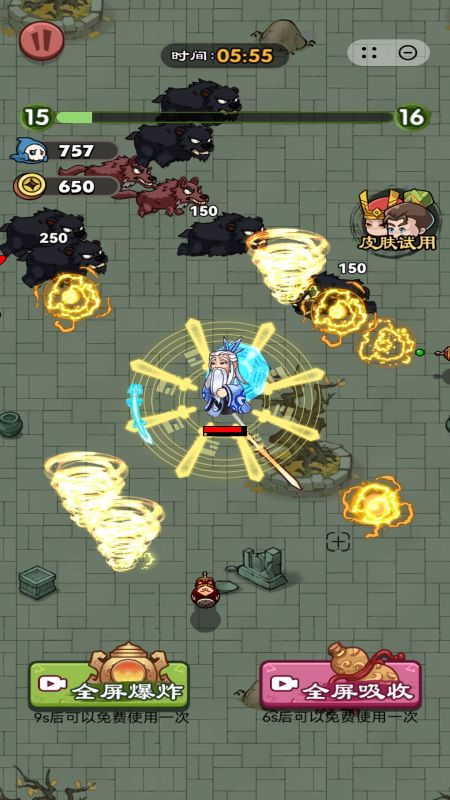 1、玩家可以升级和解锁多种飞刀技能,终极技能万刀归宗大范围弹幕清场。